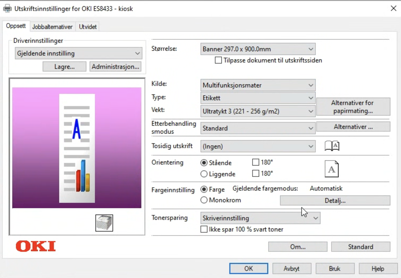 Configuring Printer Settings to Banner 90cm size for OKI printers
