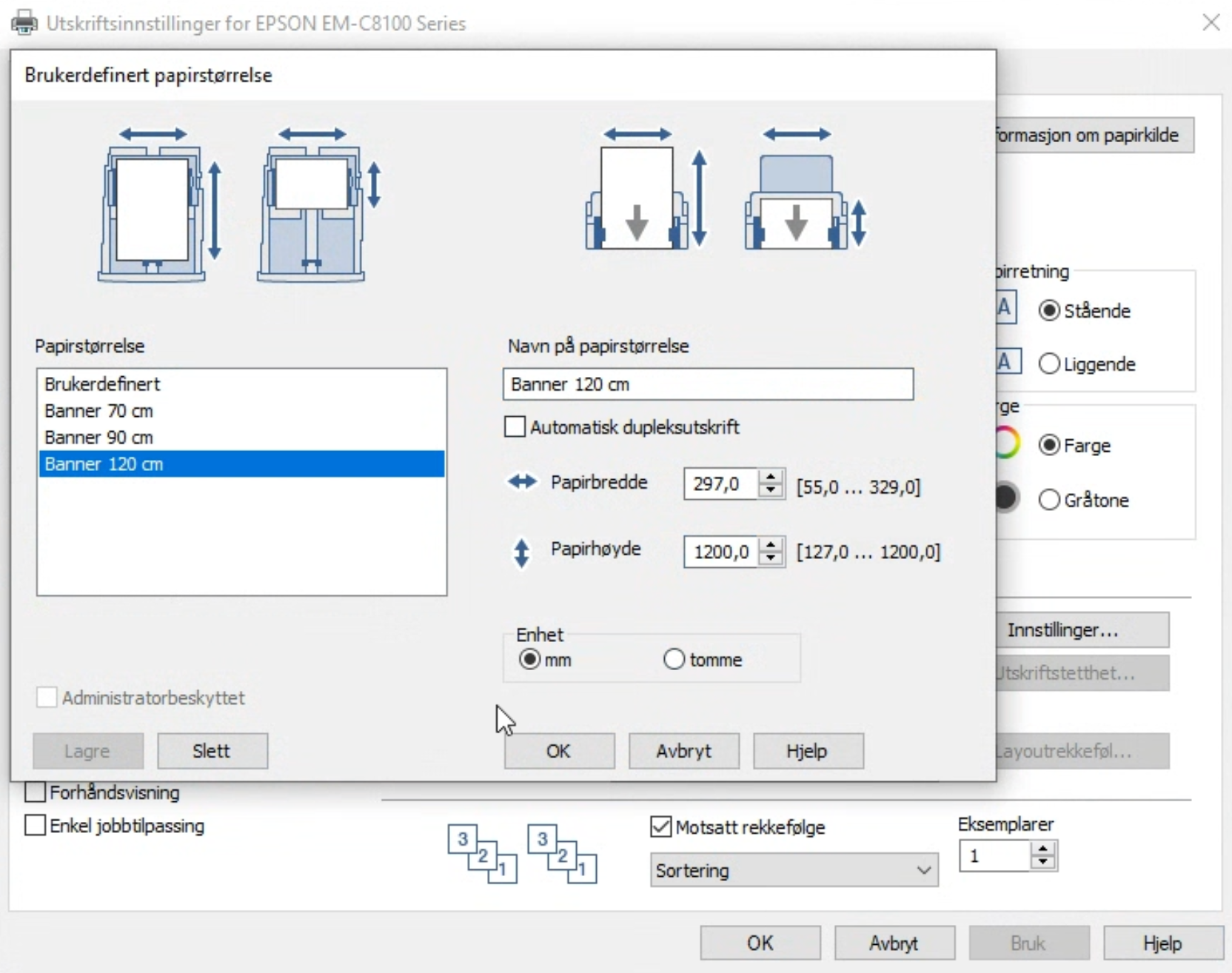 Gi printeren et gjenkjennelig navn som «Epson C8100 Banner 120cm».
