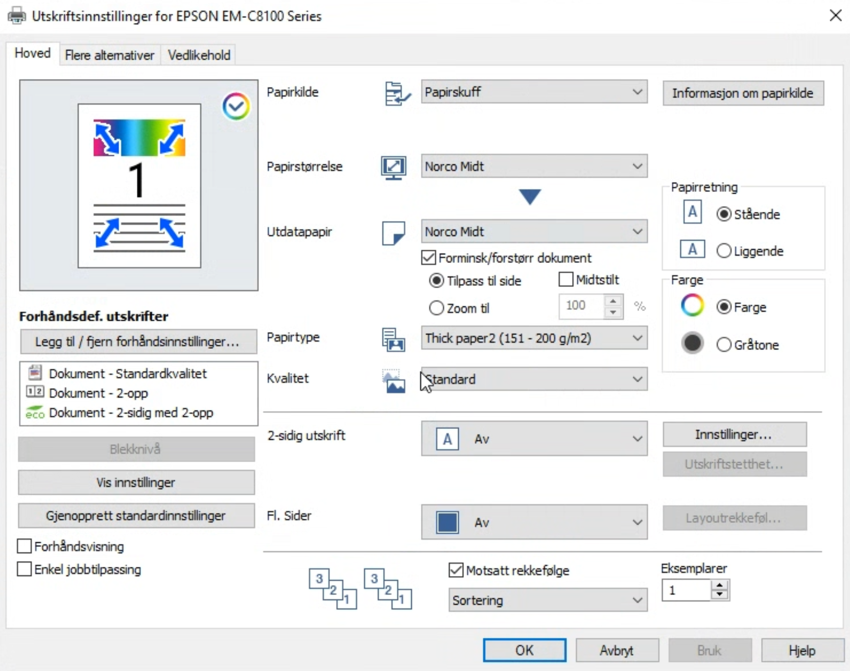 ✅ Checkpoint: Testutskrift på Norco Midt — riktige mål og tekst/grafikk sitter der det skal? Da er oppsettet ferdig.